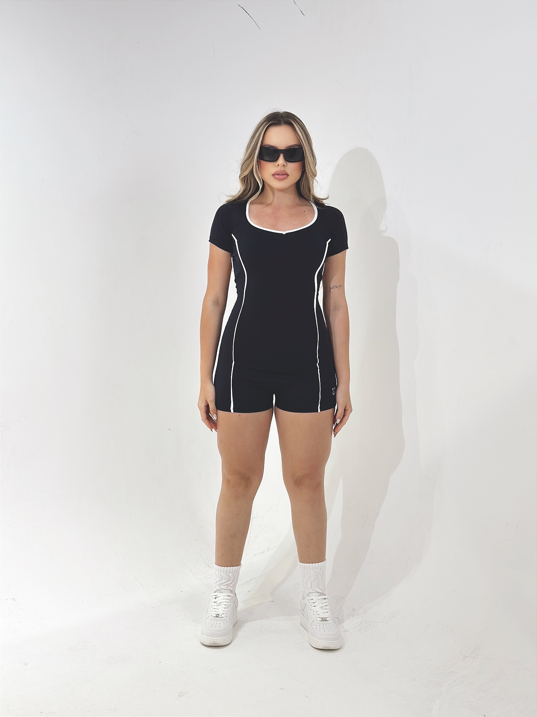 Conforto e Estilo: Macaquinho black POWER em Poliamida.